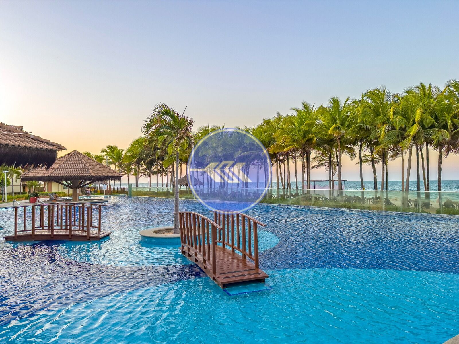 Condomínio conta com uma área de lazer completa com piscinas, quadras poliesportivas, salão de jogos, parquinhos infantis, sala de cinema, restaurante com atendimento na praia e guarita privativa com acesso à praia.