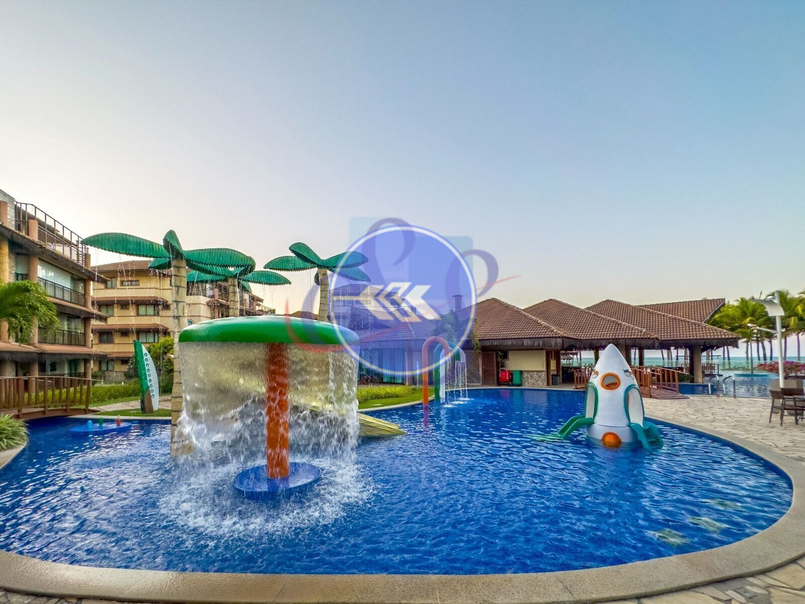 Condomínio conta com uma área de lazer completa com piscinas, quadras poliesportivas, salão de jogos, parquinhos infantis, sala de cinema, restaurante com atendimento na praia e guarita privativa com acesso à praia.