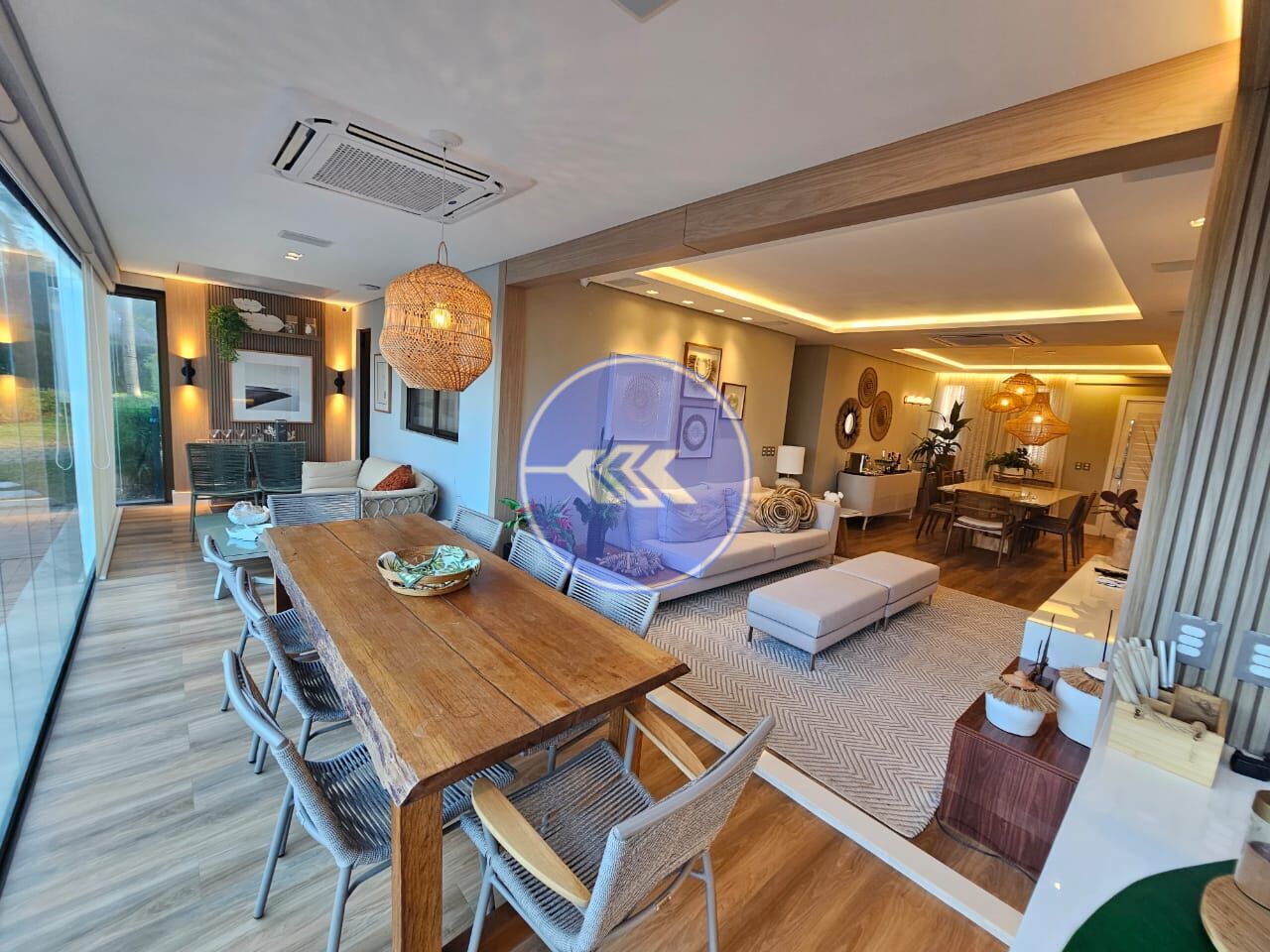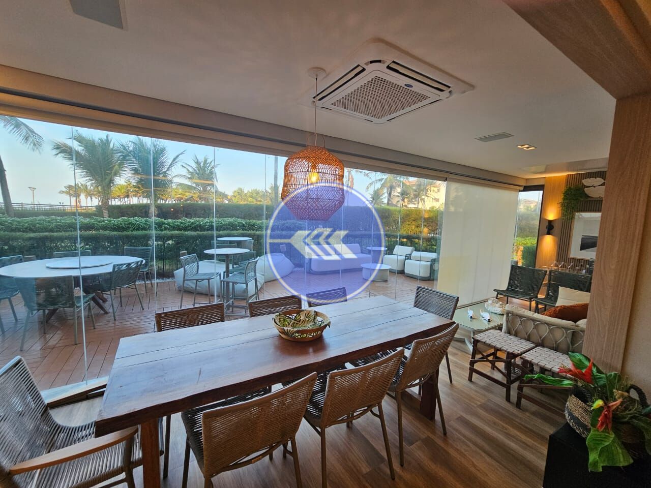 Luxuoso apartamento em condomínio no Porto das Dunas. Oferece uma área interna de 148m², além de 43m² de jardim privativo. A planta foi modificada para criar ambientes integrados, proporcionando um espaço amplo e harmonioso. Com sala de estar e jantar, iluminação panejada, varanda gourmet equipada com cortina de vidro. 3 suítes espaçosas, dependência completa de empregada, cozinha ampla. O apartamento também conta com 3 vagas de garagem, garantindo conforto e praticidade. Há um lavabo na área externa. O acabamento é de alto padrão, com revestimento em nanoglass, que confere modernidade e sofisticação aos ambientes.