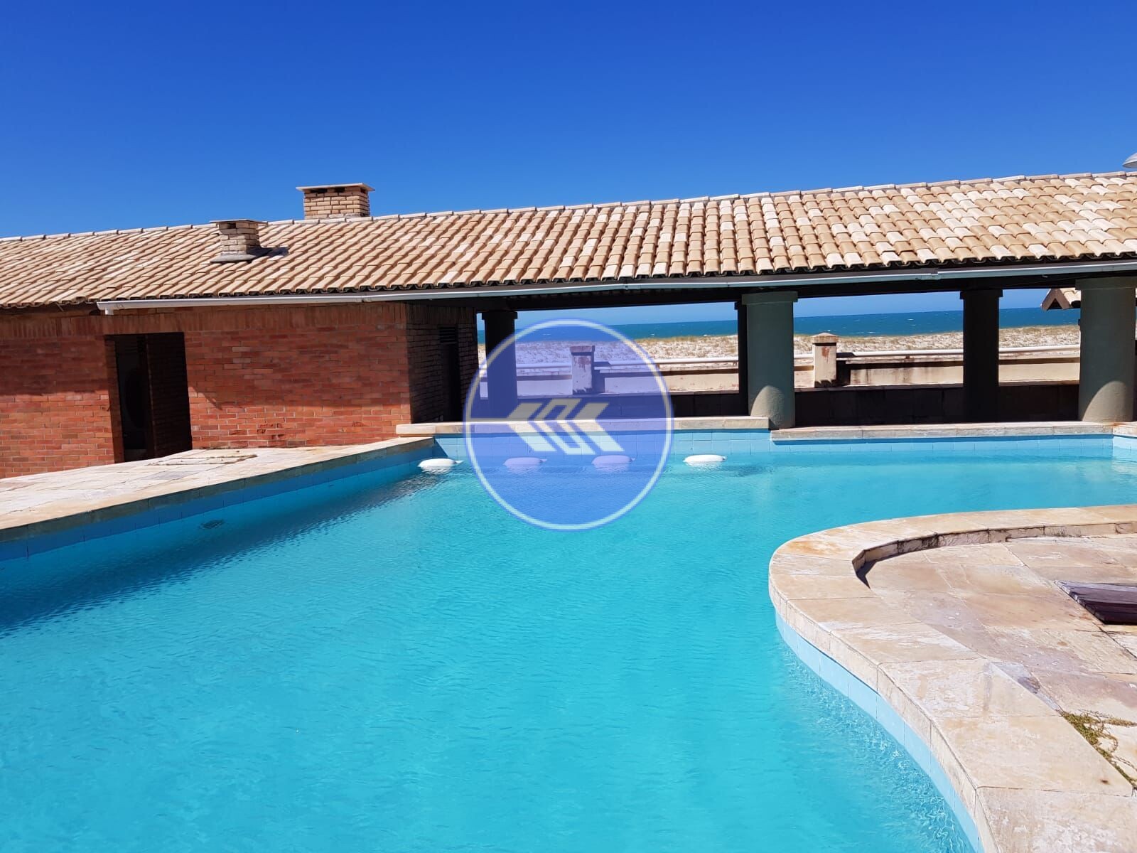 Imóvel dispõe de sala de estar e jantar, cozinha espaçosa, varanda, área de serviço, casa do caseiro. Área de lazer completa frente mar com piscina, quadra de tênis, deck com sauna e churrasqueira, um grande pomar.