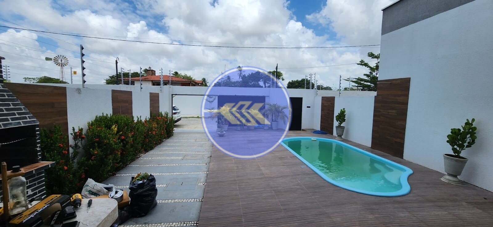 Área de lazer composta por deck com churrasqueira, piscina, jardim e muito mais!